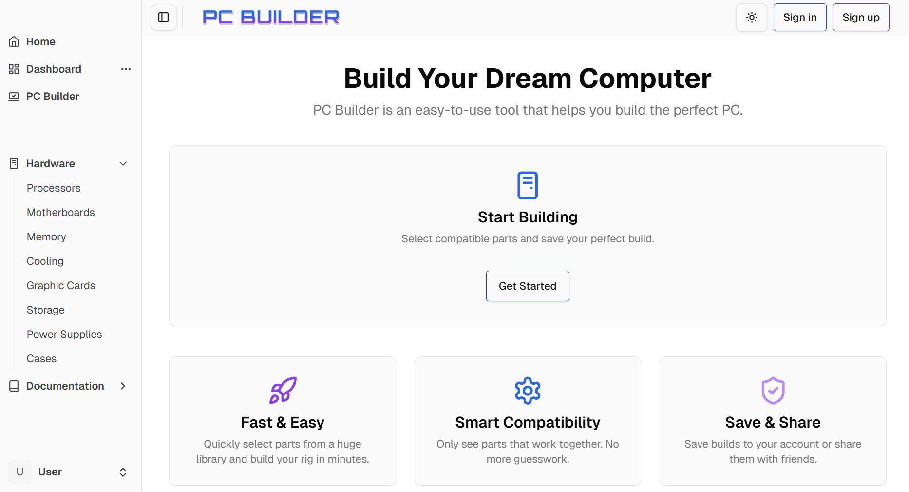 Gestart als schoolproject, maar uitgegroeid tot een volwaardige tool voor iedereen die een pc wil samenstellen zonder technische kennis. De PC Builder begeleidt gebruikers stap voor stap door de componentkeuze: processor, moederbord, geheugen, opslag, voeding en behuizing met uitgebreide compatibiliteitschecks.